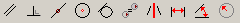 For creating geometrical rules there are icons on two locations. The first range icons are in the hidden toolbar Geometrical rules. The second range has been processed in the dialog box Edit macro (see further in the manual).