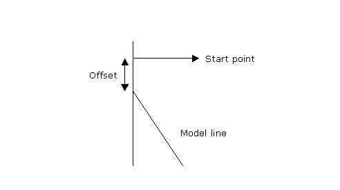 In order to draw a wind bracing, Parabuild needs two model lines on which to draw the two members. These are two intersecting lines that are drawn in the plane determined by the axis lines of the two base members. The start point of these lines is determined by a start point on the line and an offset. The end point of these lines is determined the same way.