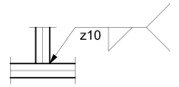 6. Weld size - With the ISO system, the weld size is placed to the left of the weld symbol and is preceded by the letters: (z) / (a) / or (z) - depending on whether the leg length or throat thickness is to be specified. Unless otherwise instructed, it is usually the leg length that is specified, in which case only the (z) box needs to be added. If the throat size is to be specified, only the (a) box needs to be entered.