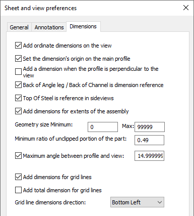 Maximum angle between profile and view - With this setting you can choose whether members that are not drawn flat on the view should be dimensioned. An angle of 0° means only members drawn flat on the view get dimensions.