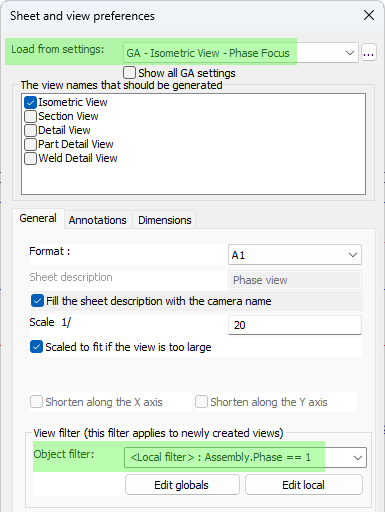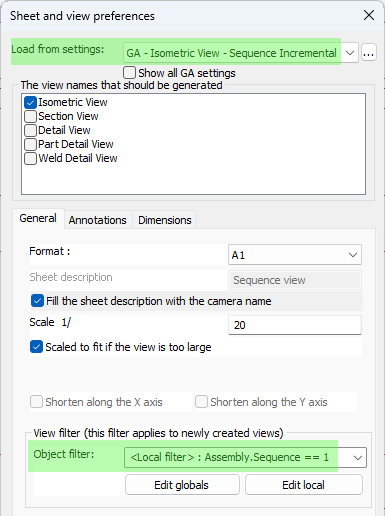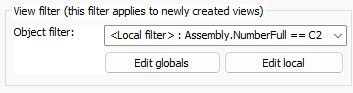 - Note that the occurrence view only works properly if the assembly number is filtered on in the view's filter. When adding the assembly focus view on an existing assembly sheet then this filter is added automatically for you. Just click on Edit Local to change the assembly number if necessary :