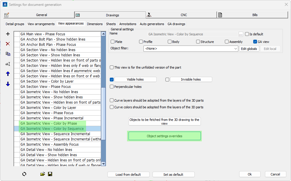 Examples based on phase and sequence properties were now added to Parabuild default settings to show how this is done, changing the color and annotation based on the phase or sequence of each object.