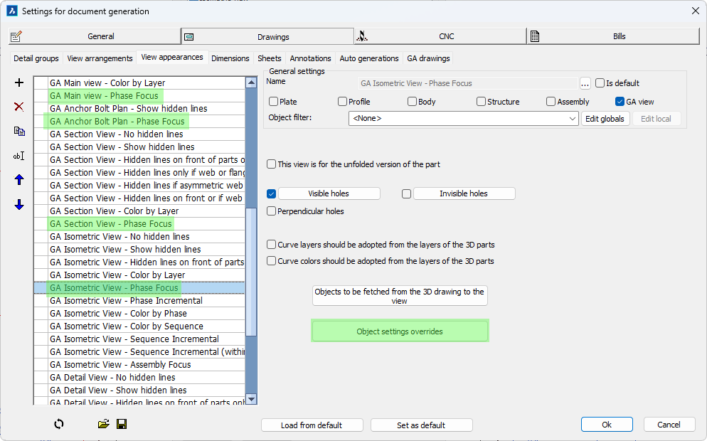 You will have to introduce settings entries on the GA drawings tab as well as on the View arrangements and View appearances tabs.
