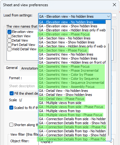 That is because the full list of available GA views is filtered based on the camera that you selected. Only the GA views that make sense for the camera's direction are displayed.