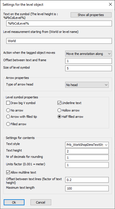 Text on the symbol - This works the same as the Template text of the property annotations. The only difference is that for this annotation type the variable %PbColLevel% can be used.