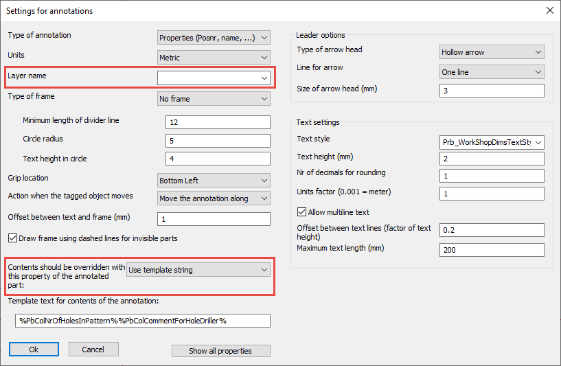 - The source of the contents should be - When there is an annotation template in both the shop drawing settings AND the annotation style, you can now configure which gets preference