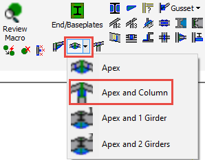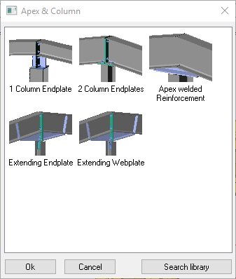 The Apex with column connection is a roof rafter connection at the apex of the roof. The rafter may be set at any angle specified by the design.