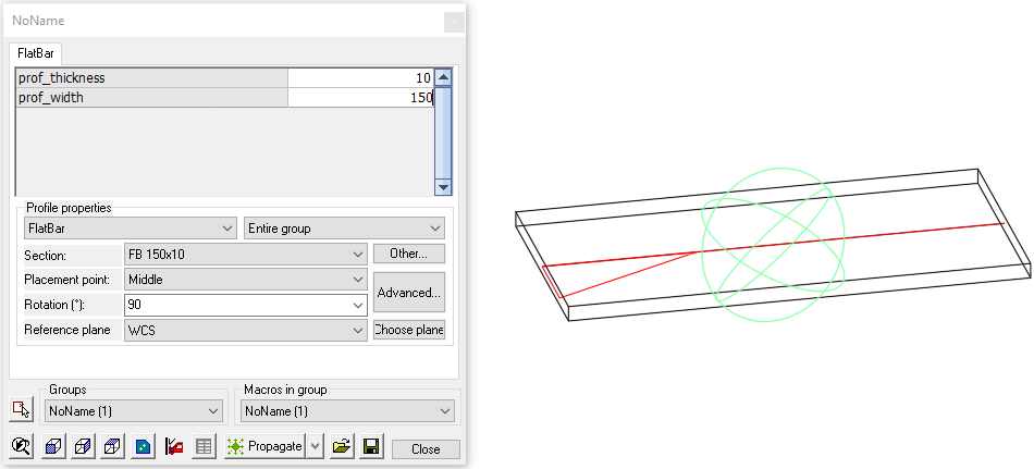 The module just contains 1 Profile placement for a flat bar :