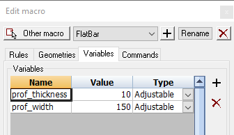 In the variables tab 2 variables were created which would be the minimum to determine the section size of a flat bar.