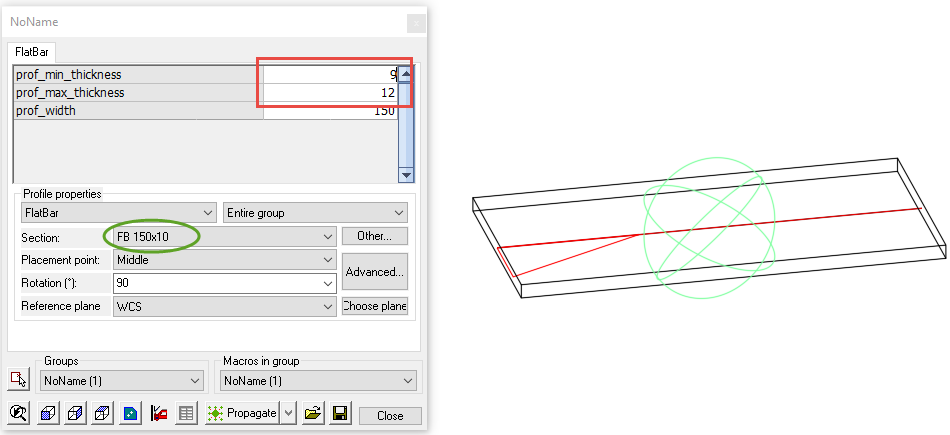 This is the result after changing the prof_width variable to 300. As the 300x10 section exists, the macro has switched the section automatically :