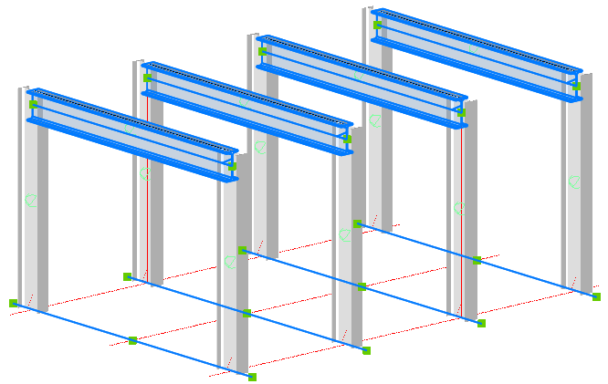 In this example the blue beams are drawn automatically after selecting the 4 blue grid lines.