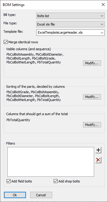 The filter system works in accordance with a list of rules. The rules are in an AND relation, this means that all rules have to apply to an element before it will be included in the part list. If no rules have been created then all elements will be applied to the part list.