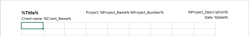 - ExcelTemplateLargeHeader.xls : The header is written in the cells themselves, which allows more control over the position of text, images, and the size of the header :