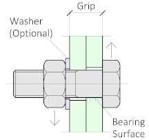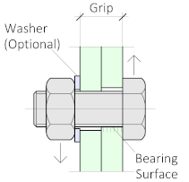- Thread starts after shear plane - The bolt length will be changed to make sure that the thread does not pass through the shear plane. See below for more information about the shear plane.