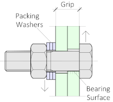 The third and last situation is where the thread does not pass through the gripped parts. Filler washers will be needed to make sure that the nut can be tightened, as the thread runout will be positioned outside of the gripped material.