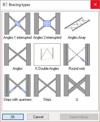 Activating the Bracing command will bring up the following bracing options dialog, from which you are prompted to select the Wind Bracing configuration.