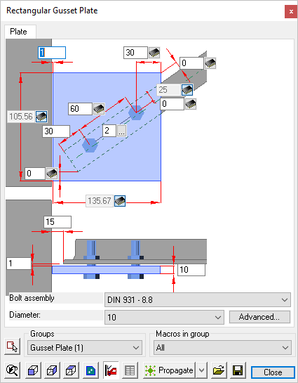 If this option is deactivated, the gusset plate dialog box will be shown just once and all four gusset plates will be the same.