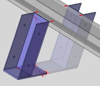 An example of brackets where match lines are transferred to the top flange automatically. There are also sub parts that have contours for other sub parts, this is optional and can be turned off. |