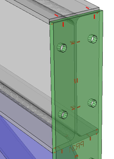 Example of a haunch connection end-plate, with it's hole match lines transferred to the flange. The scribing on the outside of the end-plate can be turned off |