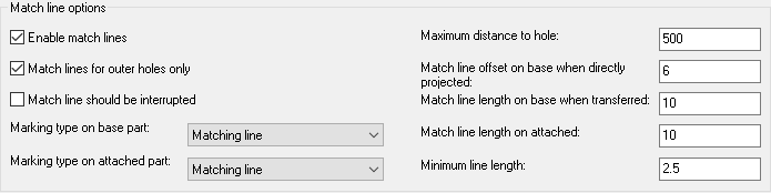 Maximum distance to hole - The maximum distance of the hole to the edge where the objects meet. Holes farther than this will not get match lines or punch marks