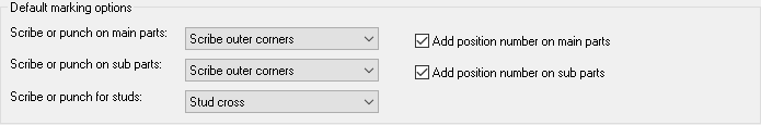 Add position number on sub parts - When enabled, the punch marks or scribings on the sub parts will be accompanied by a text of the part's position number that should be welded there