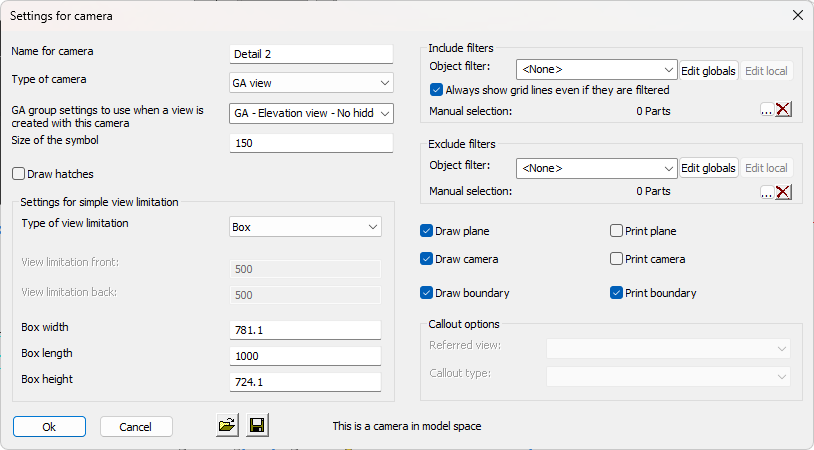 Camera type - This relates more to the type of sheet on which the view is located (plate, member, assembly or GA)