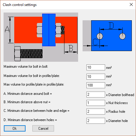 Reference GuideParabuild SettingsGlobal settings Clash Control The default settings may be revised to suit user preferences. Values greater than the maximum, or less than the minimum will be marked on the drawing as 'Clashing'