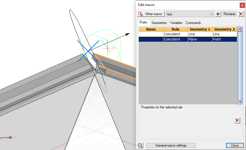 If the edge of the second profile was chosen and the profiles are not perfectly aligned, the macro will fail to calculate the plane's position.