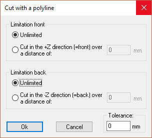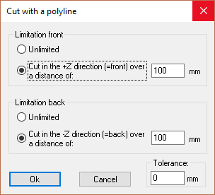 The following dialog will appear where you have the option of making the cut Unlimited - which will cut through the entity entirely - or alternatively, you may prescribe the depth of the cut.
