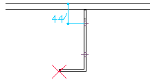 Intersection under + middle - With this example not only the option Intersection under was enabled but also the option In the middle of the welded element's thickness - The result is that the point will be placed in the middle of the bracket's thickness.