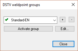 - Activate a weld points group in the DSTV weld point groups dialog shown below. We can access this dialog from the Global settings