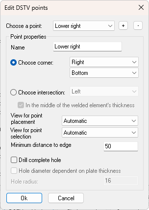 DSTV weld points are points that are inserted in the automatically produced DSTV NC-files.