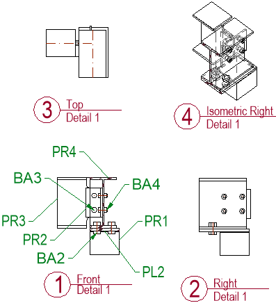 When the assembly views are to be combined with single part production views, then Parabuild will search for a suitable detail group of each sub part individually.