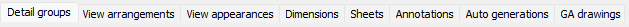 sub-tab 8 GA drawings stands on its own because it contains the settings for the creation of GA views.