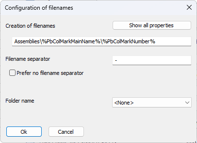 Allow multiple drawings for the same part/assembly if the filename differs - When the above folder and name contains properties such as %PbColPhase% then it may be possible that the parts/assemblies with the same number have a different value for that property (in this case different phase). Activate this option if you want Parabuild to create separate sheets if the property values in the name differ, even if they have the same part/assembly number.