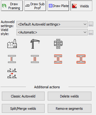 - Classic AutoWeld - Opens the AutoWeld command that allows you to draw welds automatically on a selection of parts or on the entire drawing
