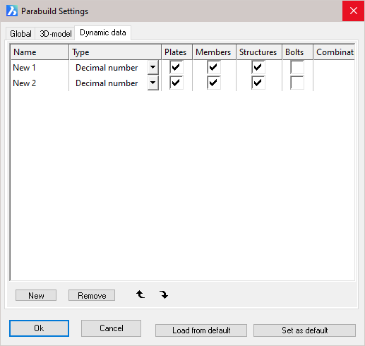 Dynamic properties are custom properties that the user can assign to Parabuild objects.