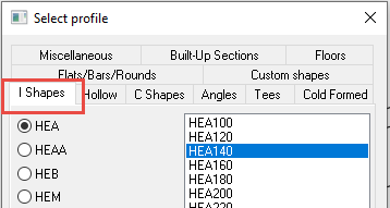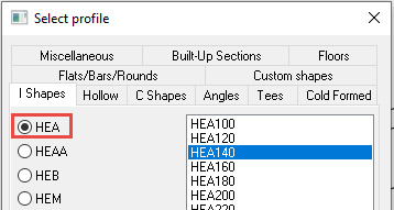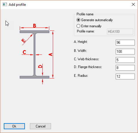 All columns that follow hereafter are columns that define the dimensions of the profile (height, width, thickness,…). These columns can differ depending on the type of section that was chosen for the table.