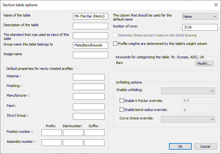 Keywords - Enter keywords here that are related to the table, such as AISC or Europe. The Library Localization tool uses the keywords to allow the user to quickly enable section shapes that have a certain topic or that are for a certain area.