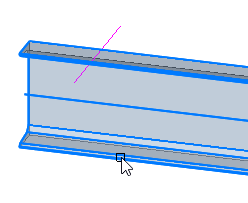 Selecting the underside of the flange (the circumference of the flange is highlighted here in orange). |