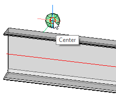 After pressing <Enter> for not wanting to select a sub geometry : Selecting the center of the sphere with the help of Object Snapping. This is just an example. We could snap to any point on any object. This can be a point on an object unknown to Parabuild such as 3D Solids or 3rd party software objects. |