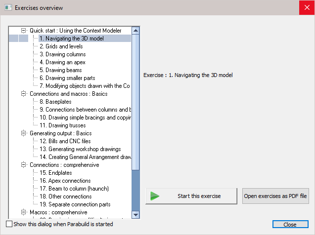 These exercises are designed to familiarize the user with the basic functionality of Parabuild.