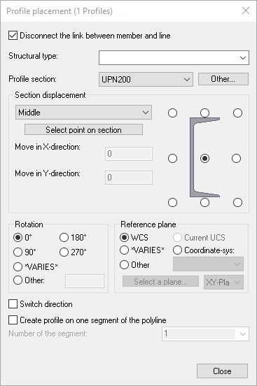 - SectionOffsetTypeName : Changes the location of the cardinal point on the section. See Section displacement in the dialog
