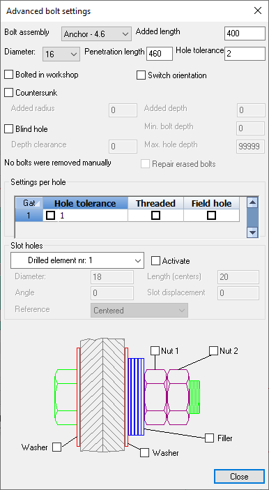 - HoleTolerance - See Hole tolerance in the dialog. This is the diameter based tolerance between bolt and hole