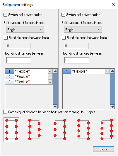 - IsFixedEntryDistance1 - Enable this to set a fixed distance between all the bolts. Refers to the Fixed distance between bolts checkbox in the dialog