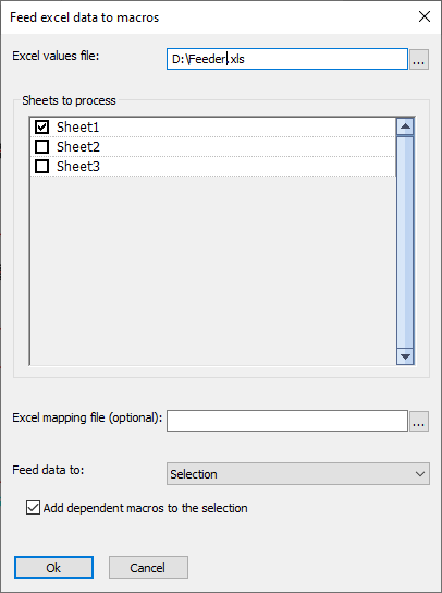 Add dependent macros to the selection - This option is only available when you have chosen a selection to limit the macros that should be changed by this feeding tool.