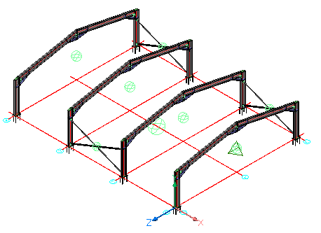 Sheeting rails and roof purlins may be added by activating the Cladding command