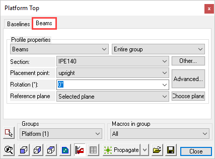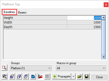 This tab enables you to edit the overall parameters of the platform, Height, Width, Depth