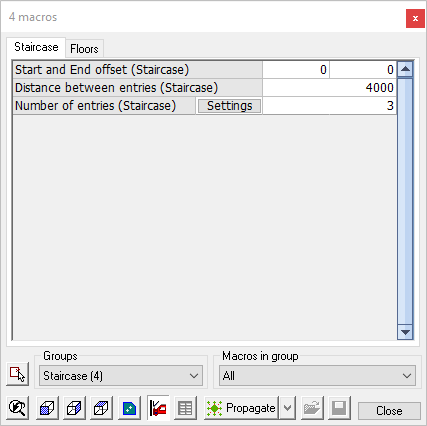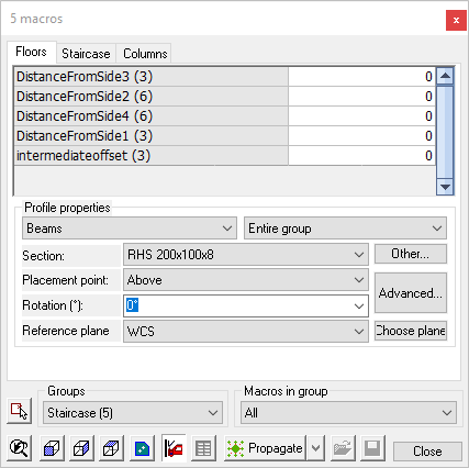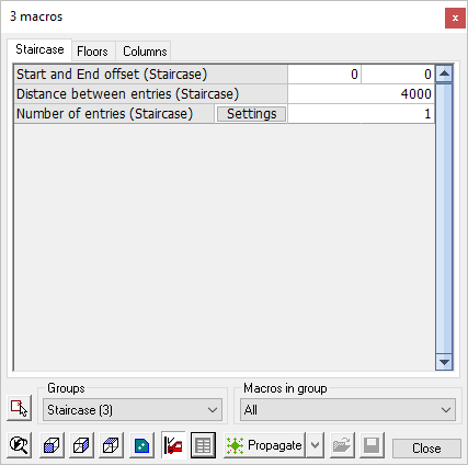 There are 3 tabs to the dialog, enabling you to edit the Floors, Staircase, and Columns
