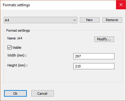 Do note that after adding a new format, you also need to create a new sheet template drawing that should be used in combination with the new format. The name of this sheet template drawing should exactly match the name of the format. You can find out more about the sheet templates and their location in the Settings for page and layout.